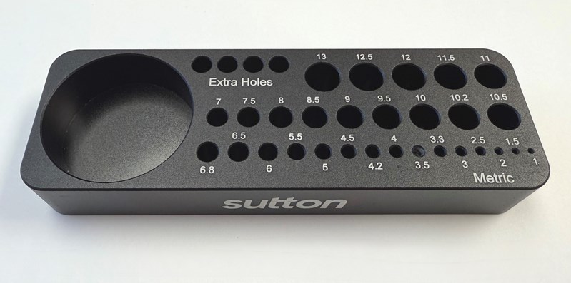 Holes for drills 1.0-13.0mm in 0.5mm rises, plus 3.3, 4.2, 6.8 & 10.2mm