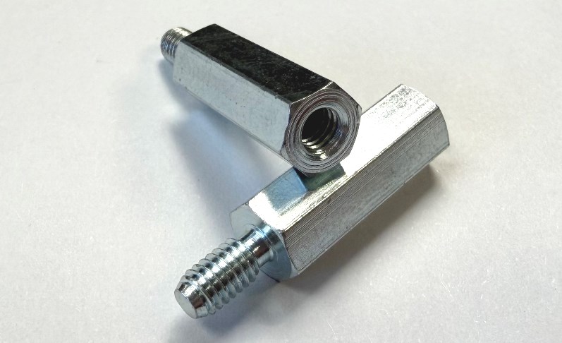 Spacer, internal and external thread Free-cutting steel Zinc plated.